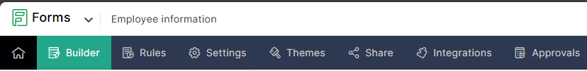 To work a form, make sure you are on the "Builder" menu. Other menus include: