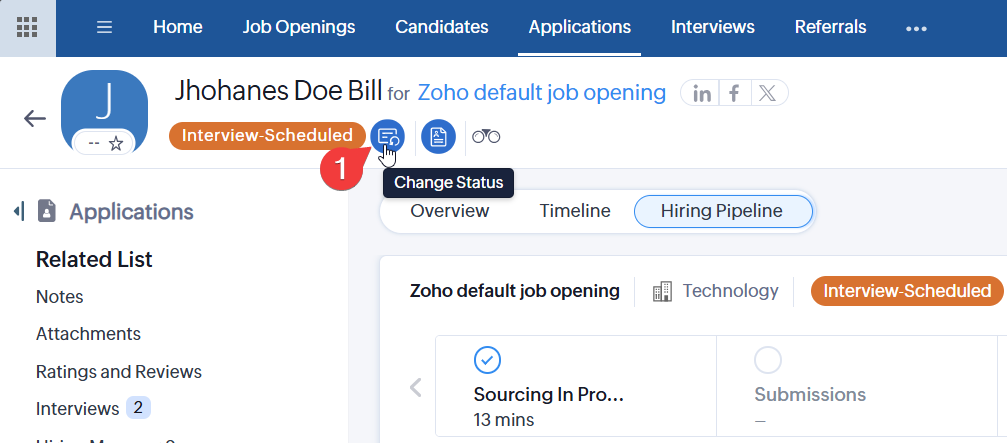 This article explains how to supervise and follow the application process for a job opening using Zoho Recruit.