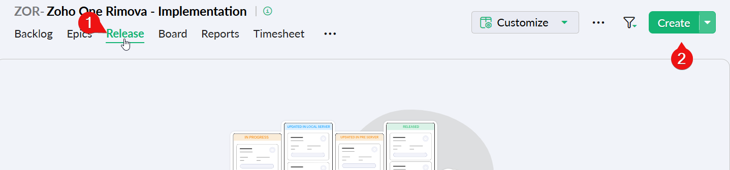 Releases are weekly goals that we define to guide the work through the week. To create a new release, click the "Release" menu and then "Create":