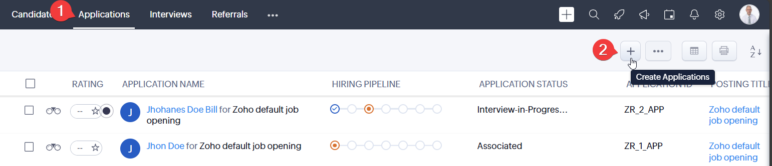 This article covers how to get or register an application in Zoho Recruit. Applications are the link between a candidate and a job opening.