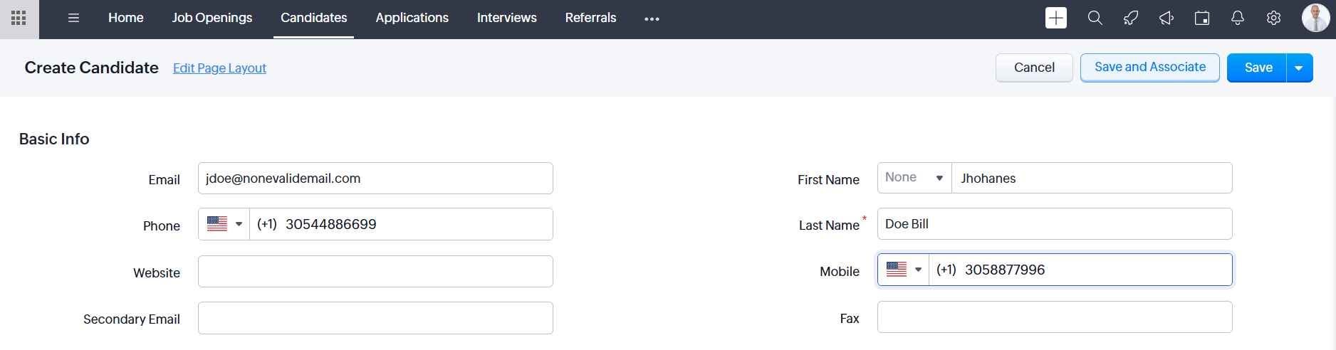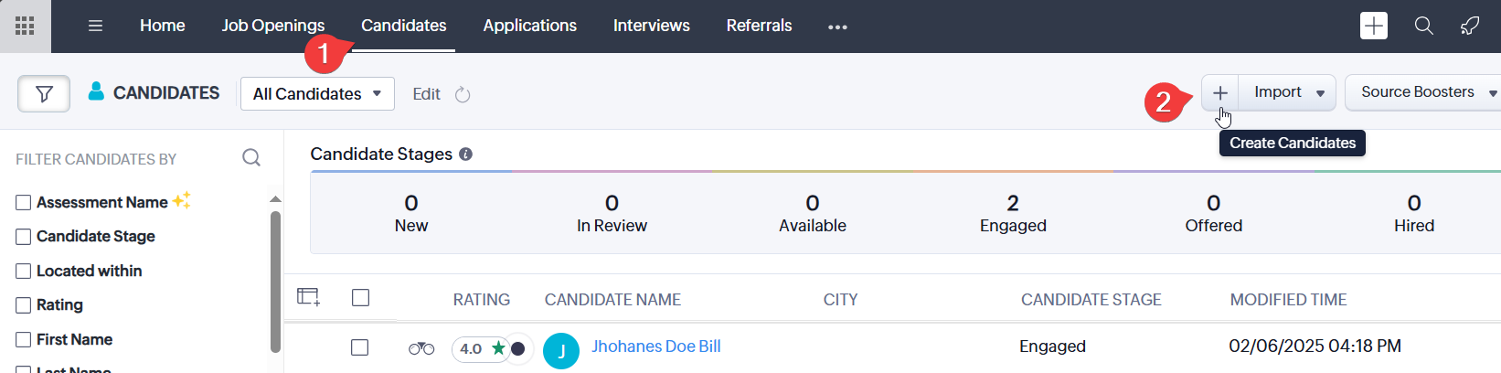 - Manual entry: a recruiter can manually add the information of a candidate, using Zoho Recruit