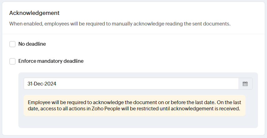 While uploading a file, you can configure it so that an acknowledgement is required to employees: