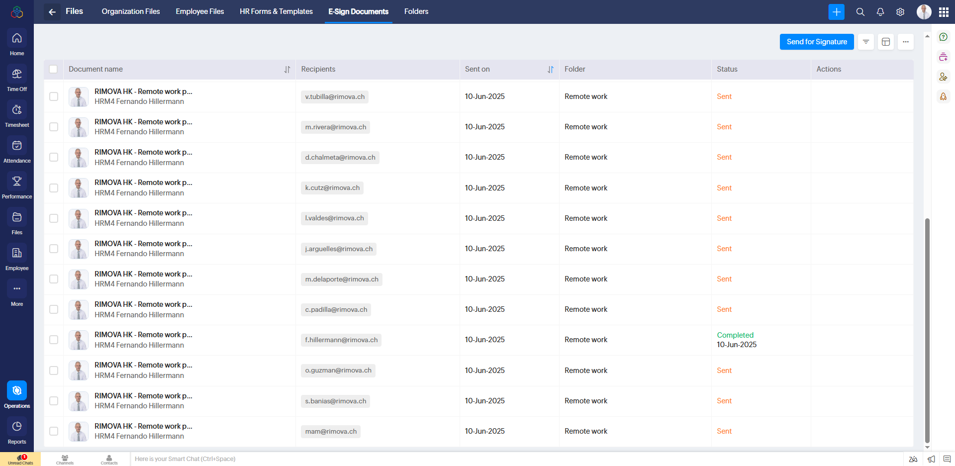 To check the status of sent documents, go to Operations - Files and click on "E-sign documents":