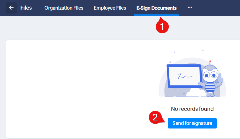 This article covers how to send and sign documents to be signed, by using Zoho People.